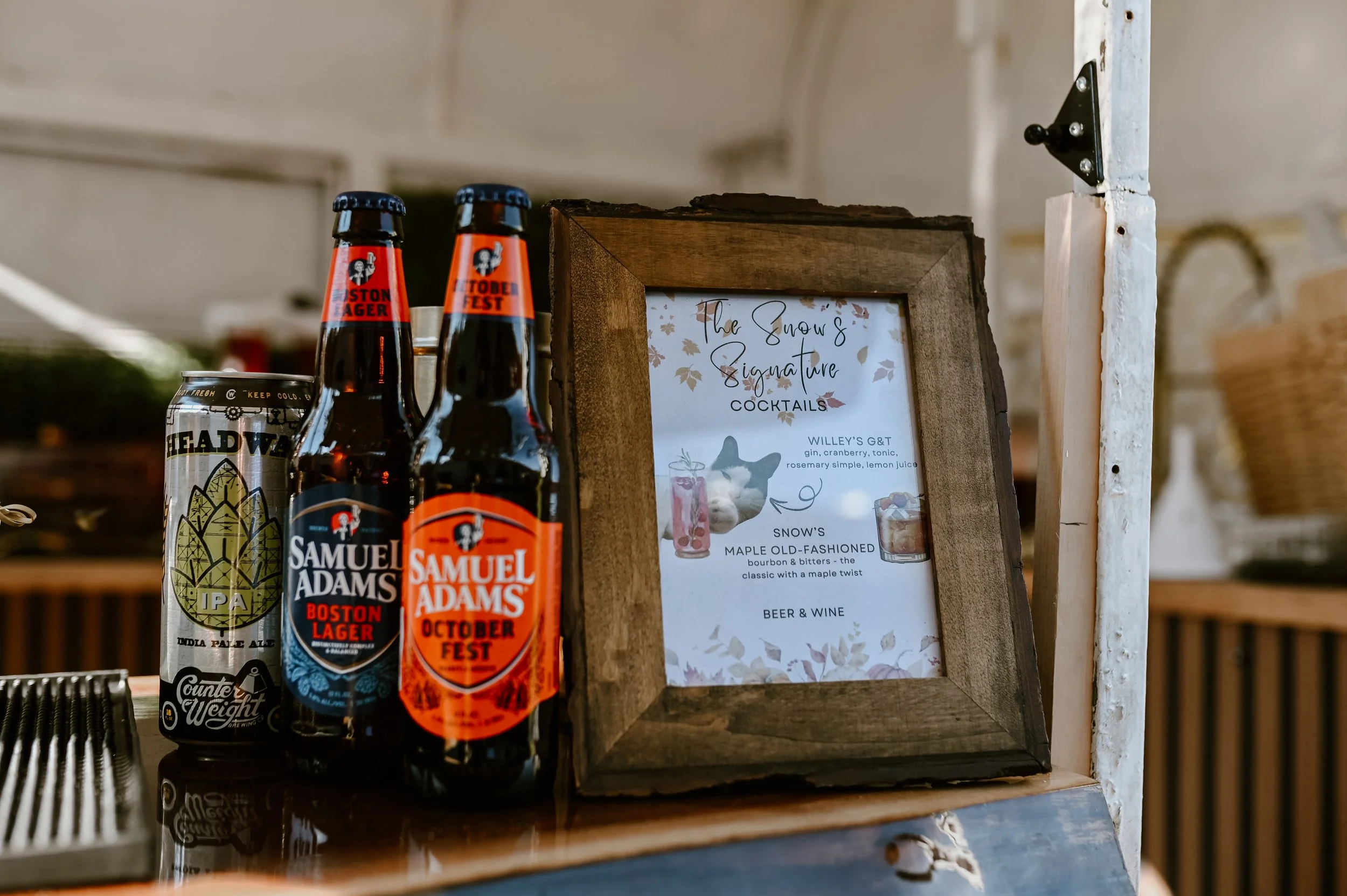 Cocktail menu for signature drinks at a wedding on a farm in Connecticut